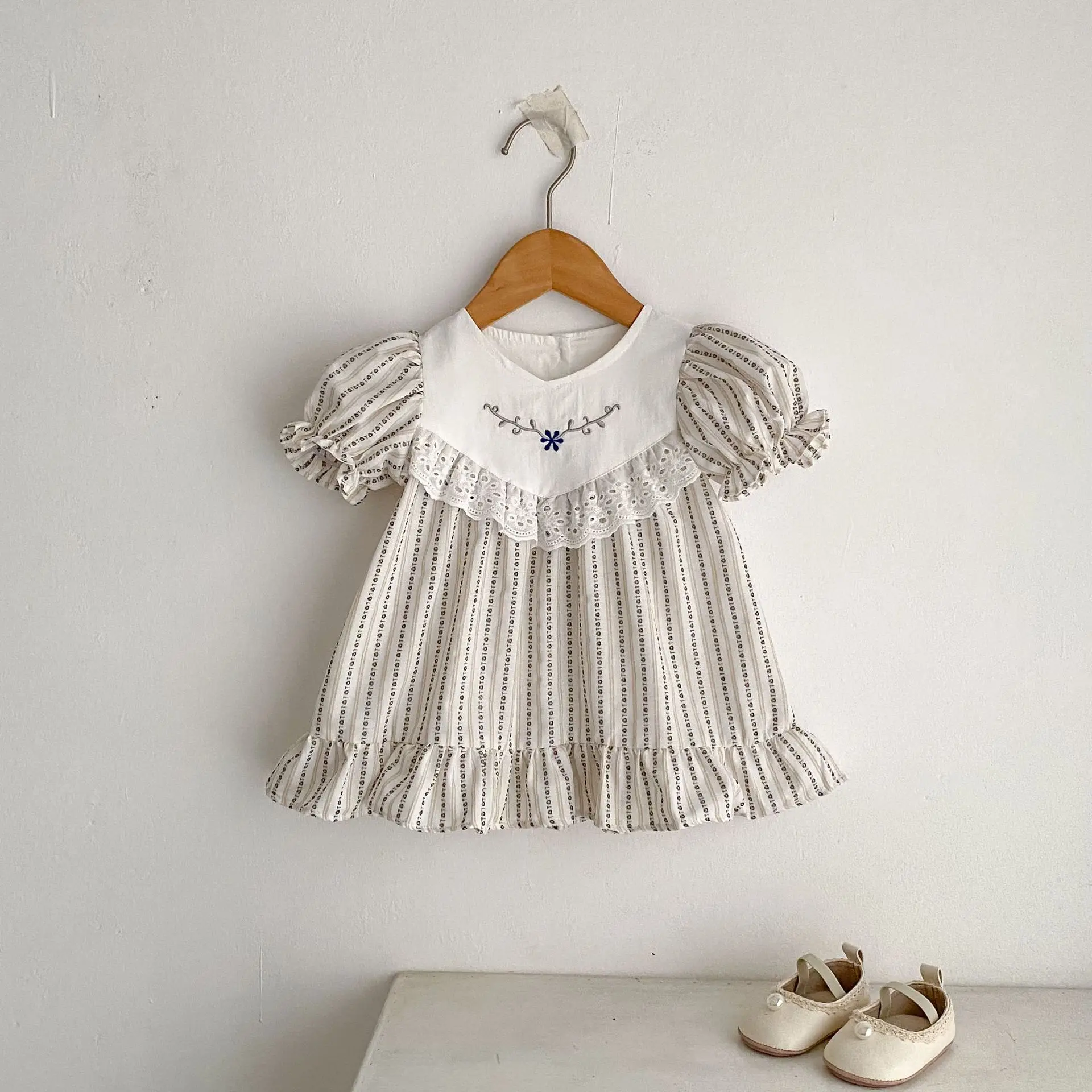 Summer new baby clothes for 0-3 years old, fashionable baby girl dress, princess style, bubble sleeves, striped skirt