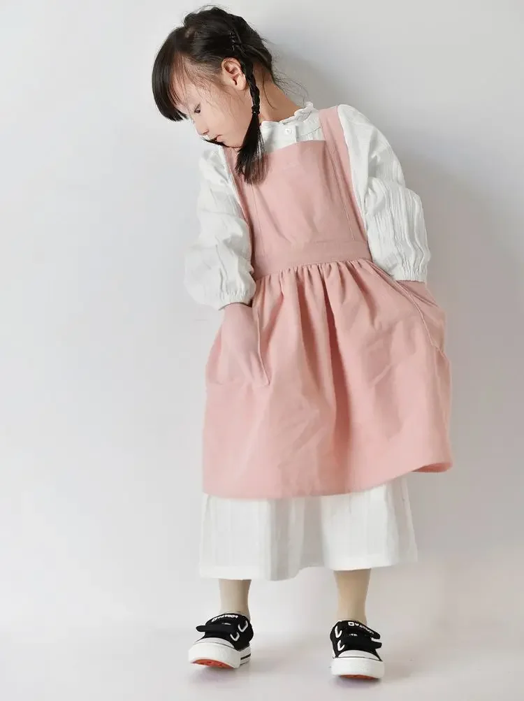 Kids Cotton Apron Dress Parent-Child Baby Children Baking DIY Skirt Solid Color Art Advertising Kawaii Kitchen Accessories