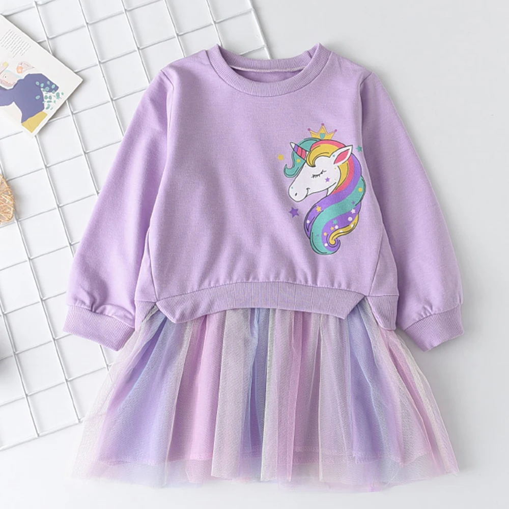 2023 New Unicorn Princess Dress Children's Spring & Autumn Season Dress Girls' Birthday Party Dress Halloween Christmas Dress