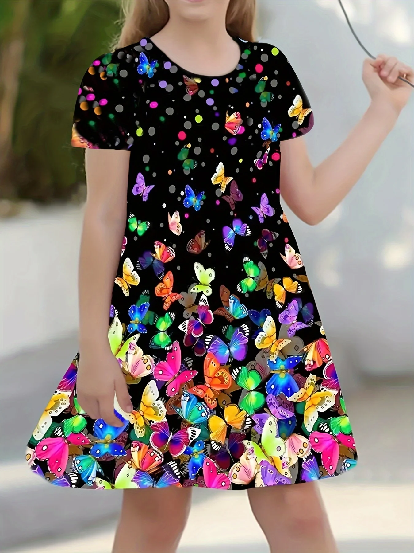 3-14 year old girl butterfly small fresh 3D printed short sleeved dress loose and comfortable party dress  Read more
