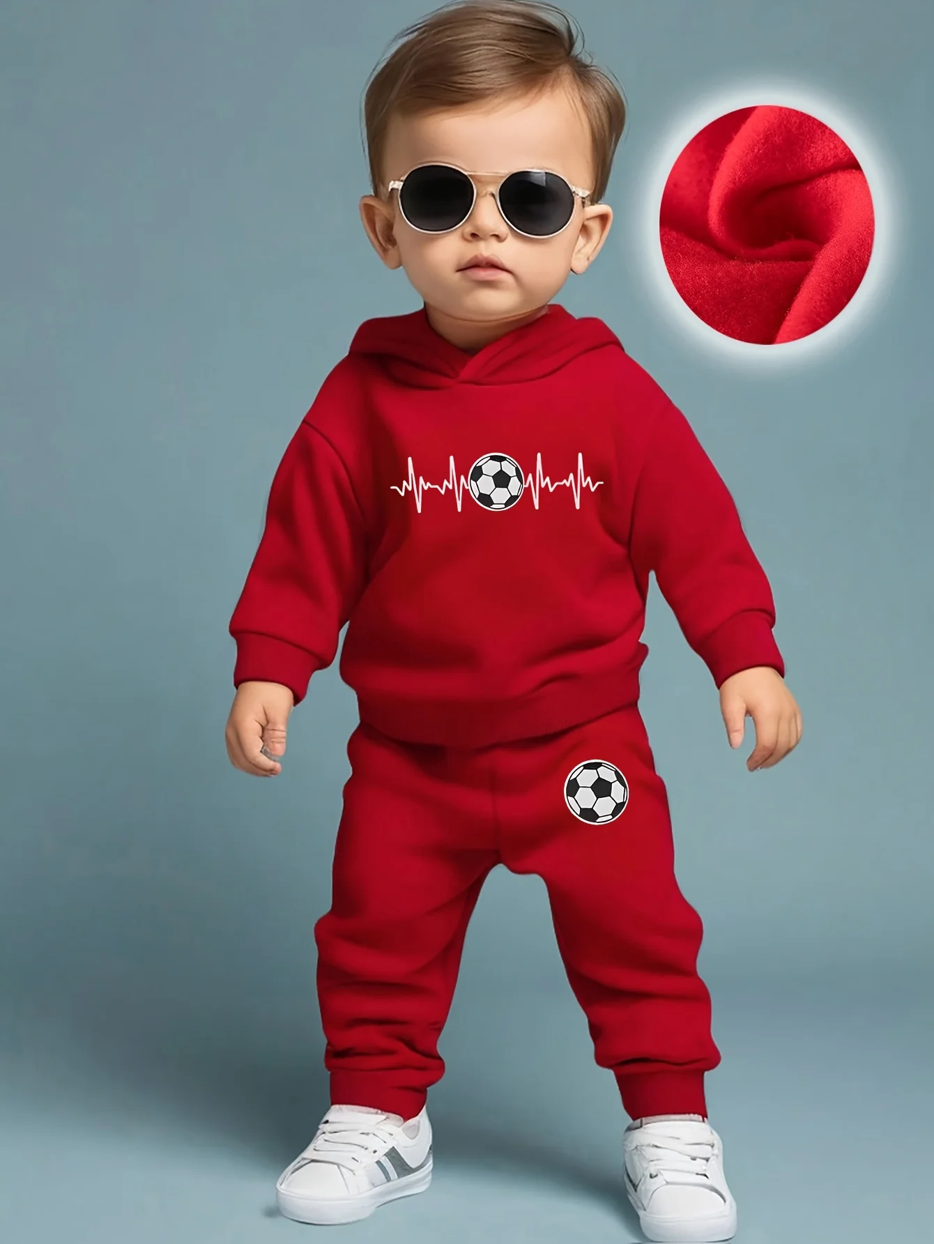 Baby Boy's Fashionable Fleece Hoodie with Geometric Soccer Pattern + Casual Sports Pants Set - Perfect for Spring and Fall Gifts