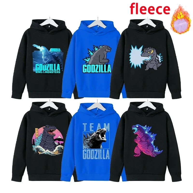 Godzilla Kong Childern Thicken Hoodie Sweatshirt Toddler Warm Movie Cartoon Long Sleeve Kids Boys Fleece Hooded Clothes Pullover