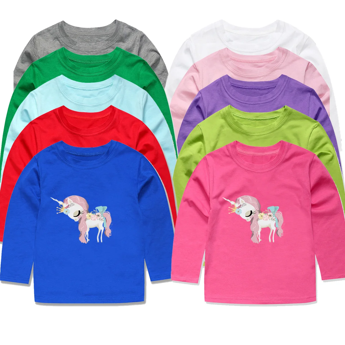 Girls Unicorn T Shirt Long Sleeve 100% Cotton Kids Clothes Cute Tops for Teenage Toddler 2 to 3 4 5 6 7 8 9 10 11 12 13 14 Years