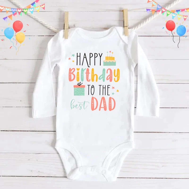 Baby Rompers Happy Birthday To The Dad Print Infant Bodysuit Boys Girls Clothes Daddy Birthday Present Jumpsuit Toddler Outfits