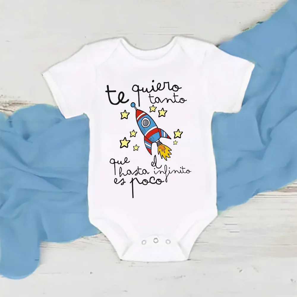 I Love You So Much That Infinity Is Not Enough Spanish Printed Baby Romper Newborn Short Sleeve Bodysuit Funny Infant Clothes