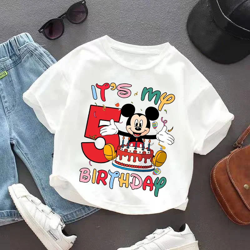Mickey Mouse Child Birthday Clothes Girl Boy Number T Shirt Cartoon Print Kids Tee Baby Top Summer Infant Cute Short Sleeve Gift