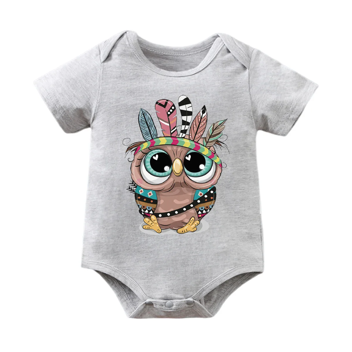 IURNXB Newborn Short Sleeve Bodysuits Infant Owl Printed One-piece 100% Cotton for Infant Baby Boys, Girls, Unisex