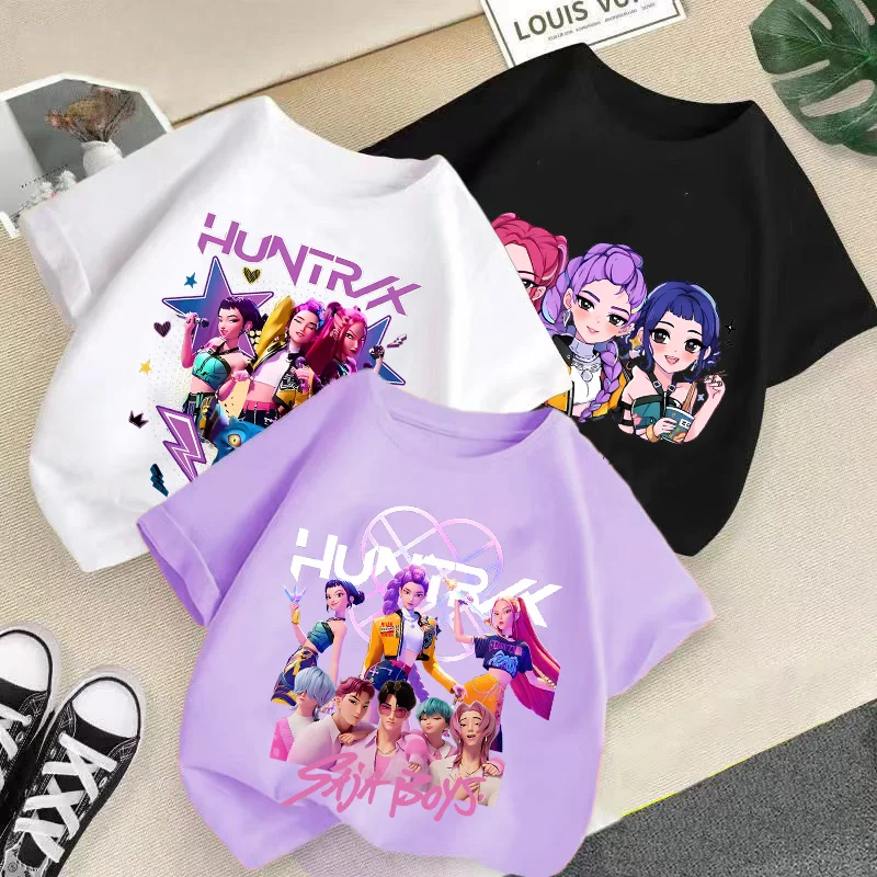 KPop Demon Hunters Cotton T-Shirt O-neck Short Sleeves Tops Boy Girl Pullover Clothes Summer Cartoon Figure Clothing Infant Tees