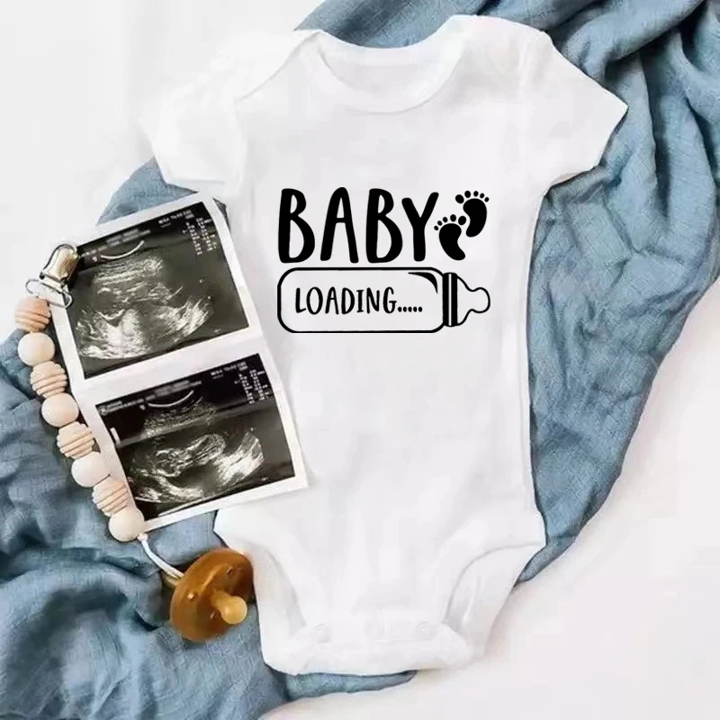 2025 Pregnancy Announcement Baby Loading Bottle Print Baby Bodysuit Newborn Girl Boy Clothes Cotton Short Sleeve Infant Rompers