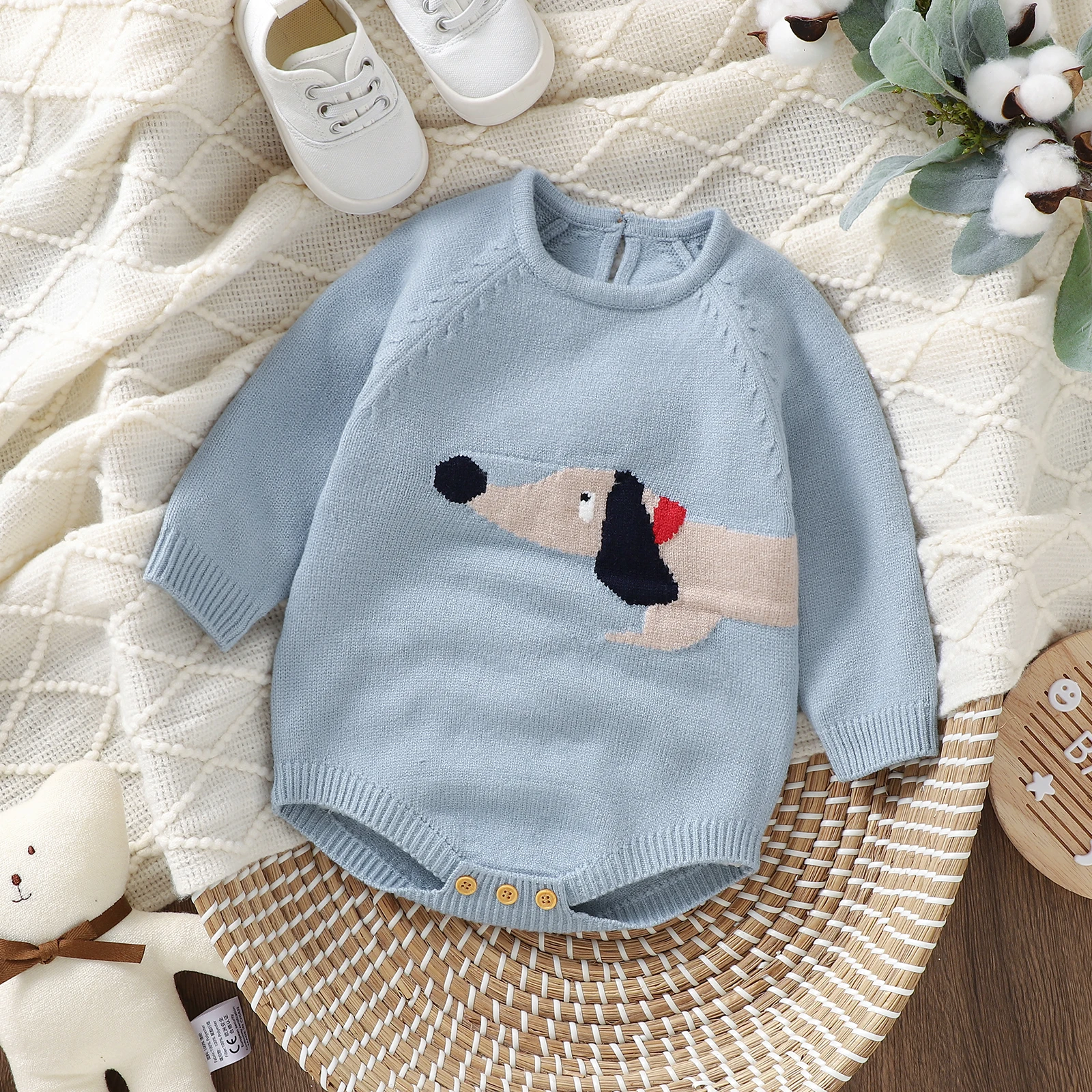 Baby Bodysuits Knitted Newborn Girl Boy Jumpsuit Long Sleeve Romper Fall Infant Kid Clothes Cute Cartoon Dog Overalls 0-18M Tops
