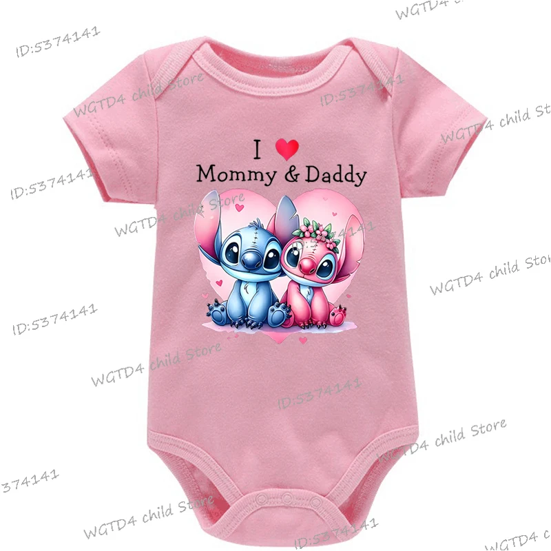 I Love Mommy Daddy Print Baby Bodysuit Stitch Kawaii Cartoon Newborn Girl Boy Bodysuits Stitch Print Cotton Infant Jumpsuit