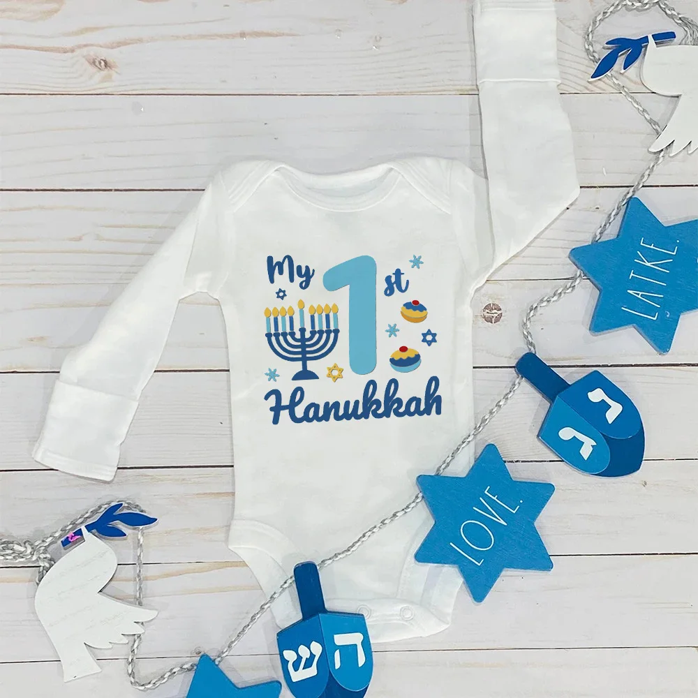 My First Hanukkah Printed Baby Bodysuit Jewish Holiday Infant Outfit Babies First Hanukkah Clothes Newborn Long Sleeve Romper