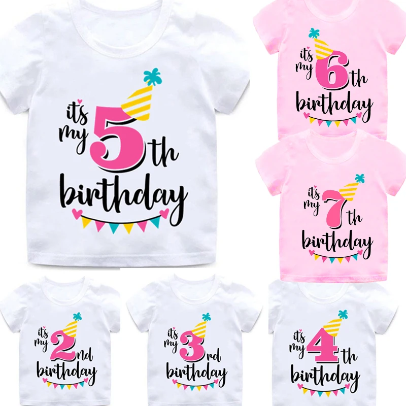Girl Birthday Cartoon T Shirt for Girls Tshirt number 2 3 4 5 6 7 8 Graphic Kids Clothes Boys Letter Print Summer Short Sleeved