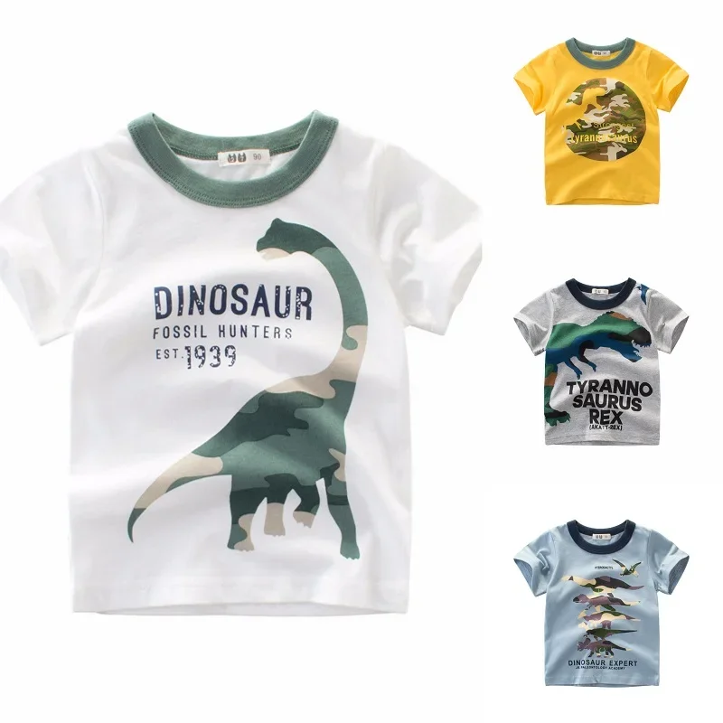 Cartoon Dinosaur Baby Boys T-Shirts 2 3 4 5 7 9 Years Kids Summer Cotton Tees Children Short Sleeves Summer Clothing 9052