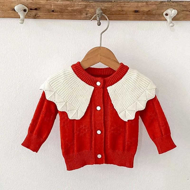 Christmas Girls Baby Sweater Cardigan Large Ruffled Collar Sweater Children Clothing Knitted Jacket Autumn Princess Knit Tops