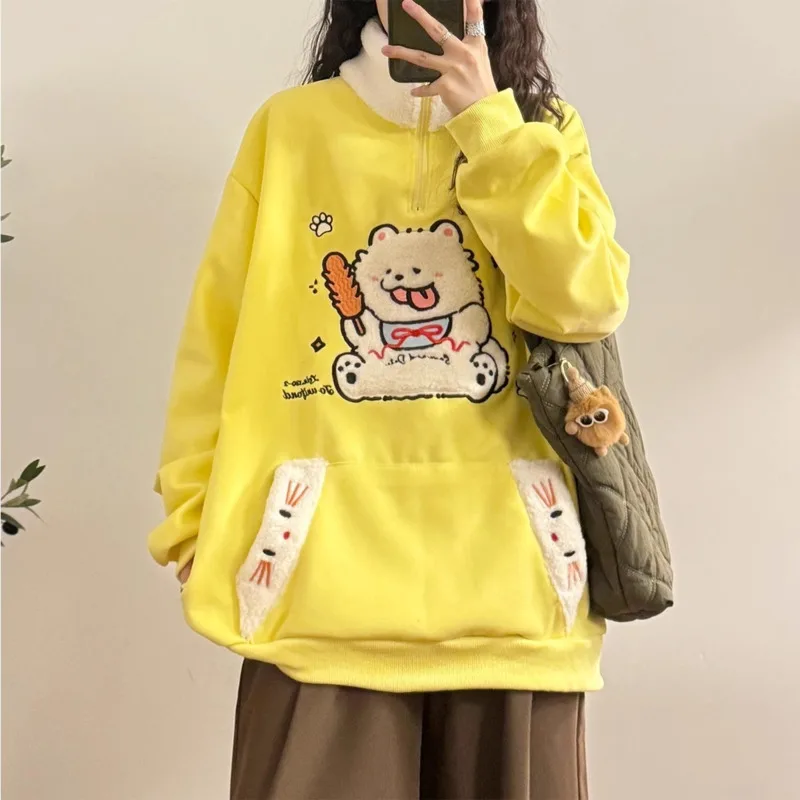 Autumn Preppy Style Cartoon Dog Plush Embroidered Thickened Hoodie Student Girls Sweet Cute Casual Hoodies Kawaii Sweatshirt