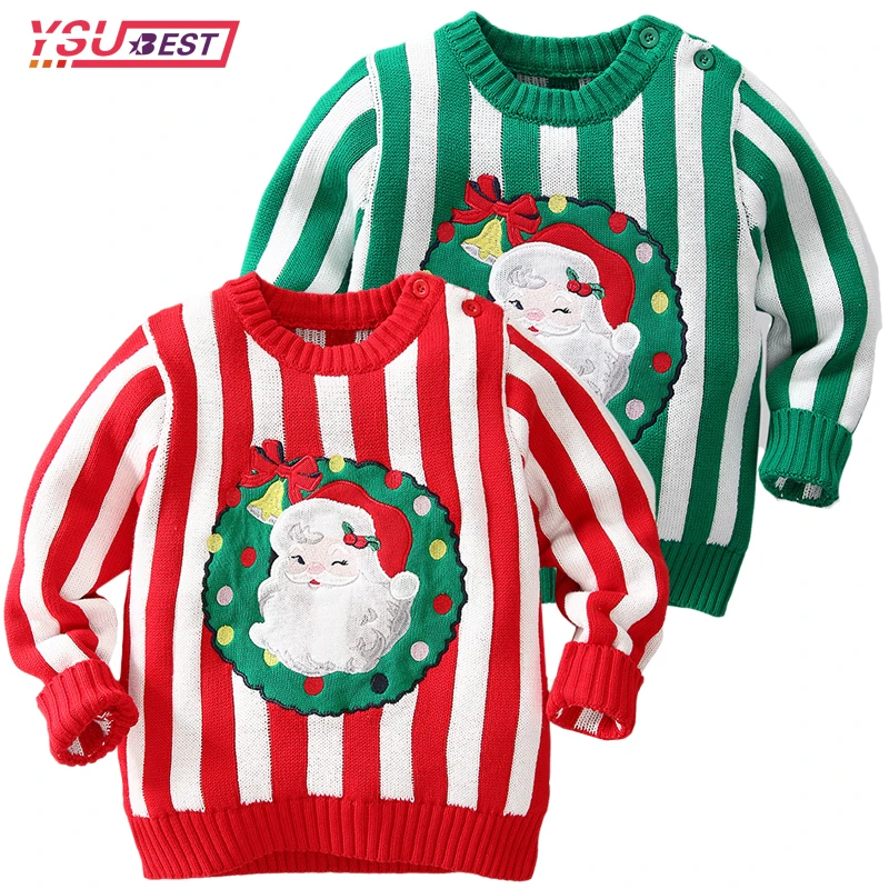 Christmas Santa Claus Boys Girls Sweater New Yea Children Clothing Baby Knitwear Pullover Kids Cartoon Print Warm Sweater Stripe