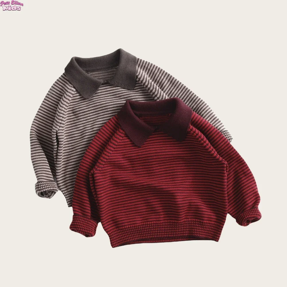 Toddler Kids Boys 1-6Y Girls Sweaters Cotton Knitted Vintage Sweater Striped Pattern Drop Shoulder Pullover Soft Casual Wear