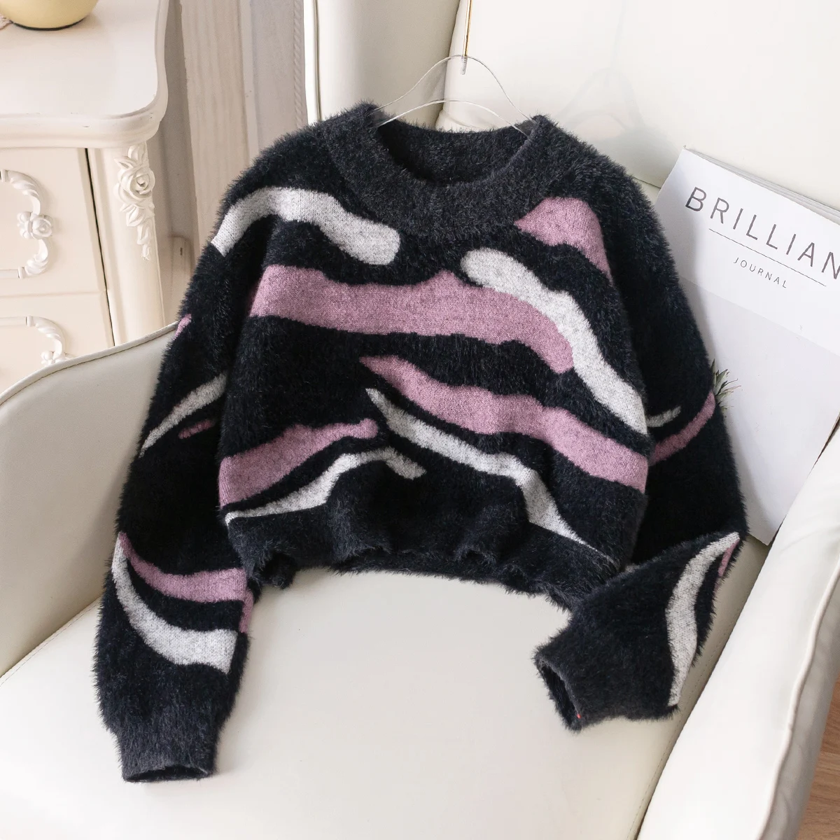 Girls' street style irregular striped short sweater knitted pullover suitable for daily leisure in spring, autumn, and winter