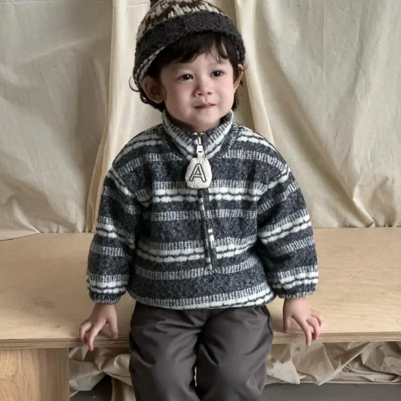 2025 Winter New Children Casual Striped Sweater Boys Girls Long Sleeve Knit Tops Baby Thick Warm Sweater Kids Knitted Clothes
