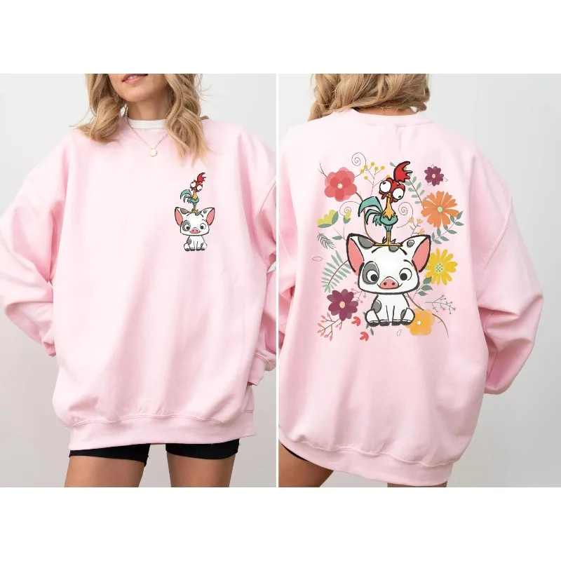 Disney Moana Sweatshirt, Hei Hei and Pua Floral Sweatshirt, Princess Moana Disneyland Vacation Sweater, Floral Moana