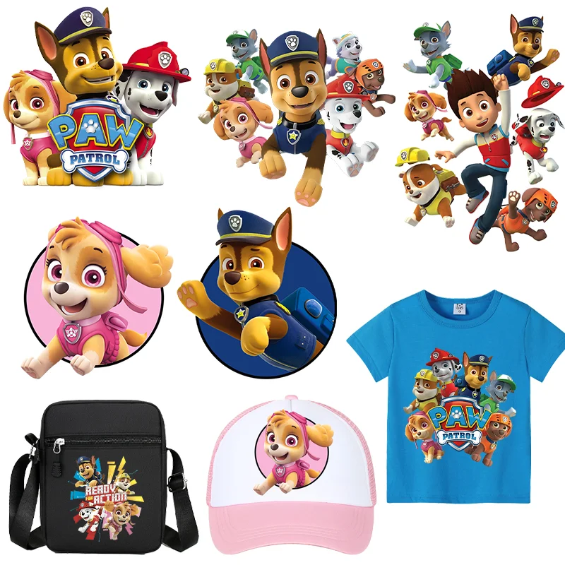 Paw Patrol Heat Transfer Stickers Chase Skye Cartoon Anime for T Shirt Hoodie Clothes DIY Kids Patches Iron on Transfer Applique