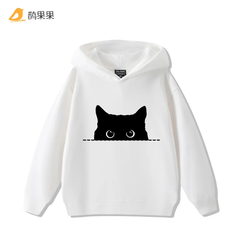 Fashion Simple Cat Print Boys Girls Casual Cute Sweatshirt Children's Autumn and Winter Comfortable Warm Hooded Sweatshirt