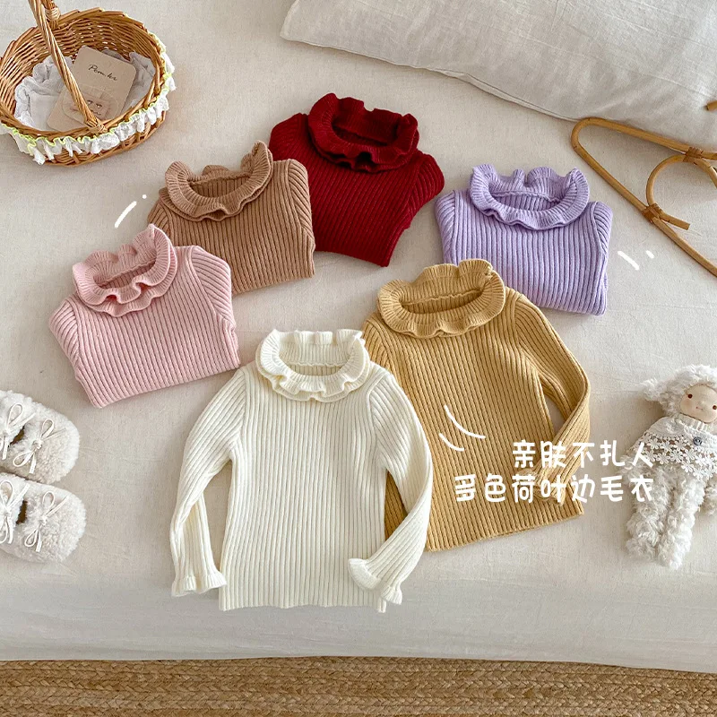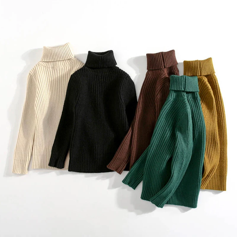 2025 New Autumn 1-7Yrs Kids Knitted Pullover Baby Boys Girls Turtleneck Sweaters Knitted Bottoming Sweaters Children Clothing