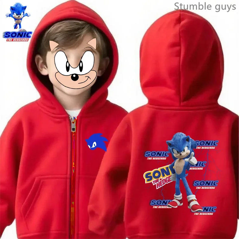 Sonic The Hedgehog Kids Zip Hoodie Spring Autumn Boys Girls Sportswear Casual Sweatshirt
