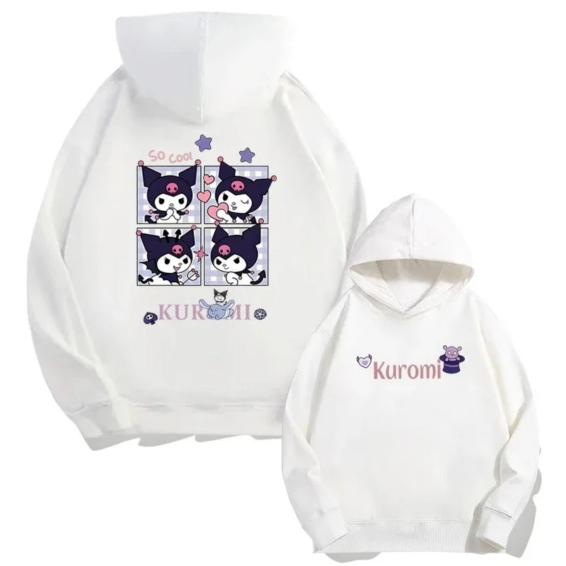 Girls Cartoon Cute Sanrio Kuromi Printed Long-sleeved Top Kids Teenagers Fall and Winter Fashion Warm Fleece Hooded Sweatshirt