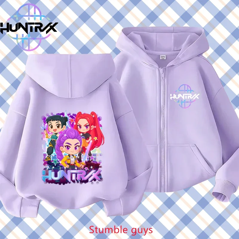 2026 New Kpop Demon Hunters Kids Purple Zip Hoodie Spring Autumn Boys Girls Fashion Casual Wear