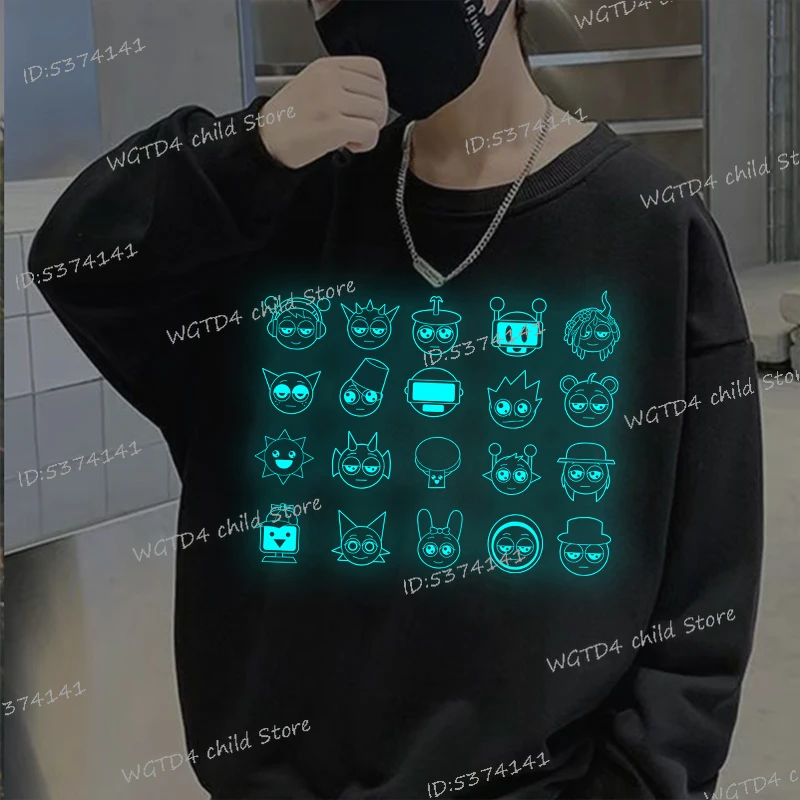 Funny Sprunki Boys Girls Luminous Pullover Horror Games Sweatshirt Fashion Sprunki Lovers Y2K Sudadera Cartoon Kids Clothing