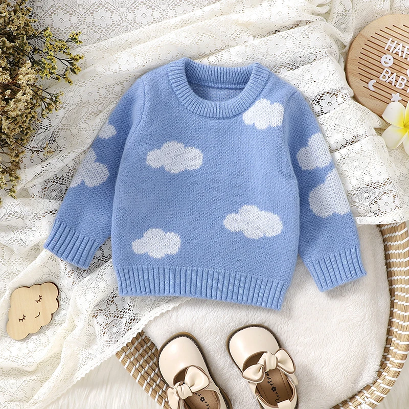 Baby Boy Girl Sweaters Knit Spring Autumn Winter Crew Neck Long Sleeve Newborn Netural Blue Knitwear Tops Children Costumes 1-3Y