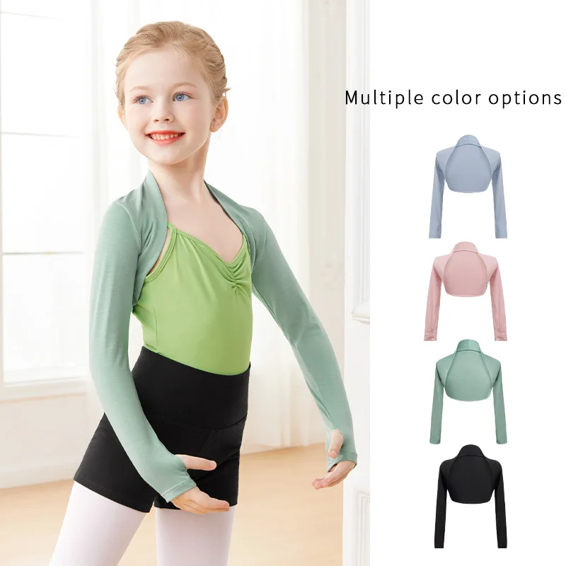 Girls Modal Ballet Shrug Kids Long Sleeve Dance Shawl Tops Open Front Athletic Bolero Cardigan for Leotards, Kids Skating Shrug