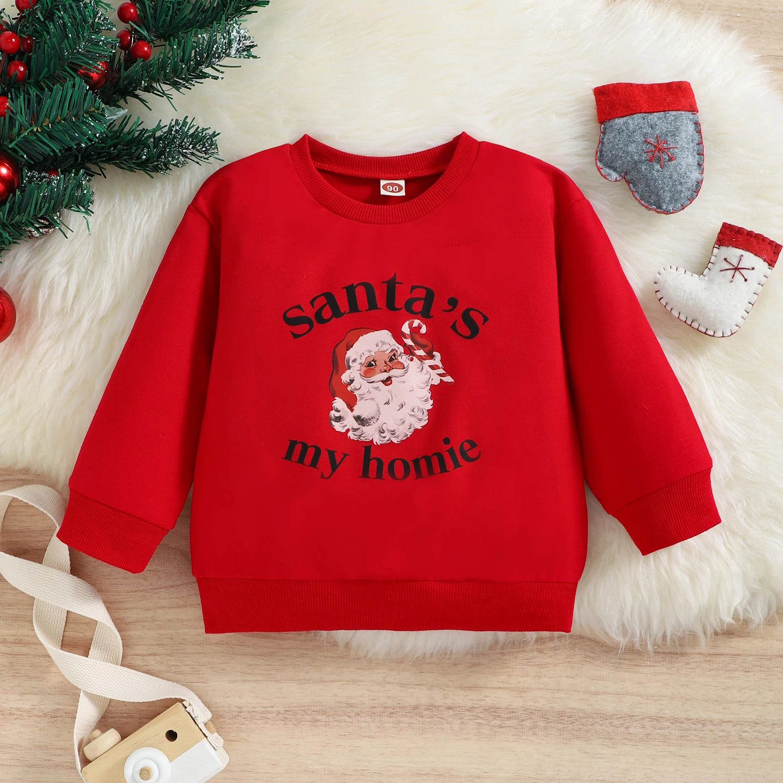 In Autumn, Comfortable Simple Casual Round-Neck Santa Letter Printed Long-Sleeved Hoodie For Boys Aged 1-5