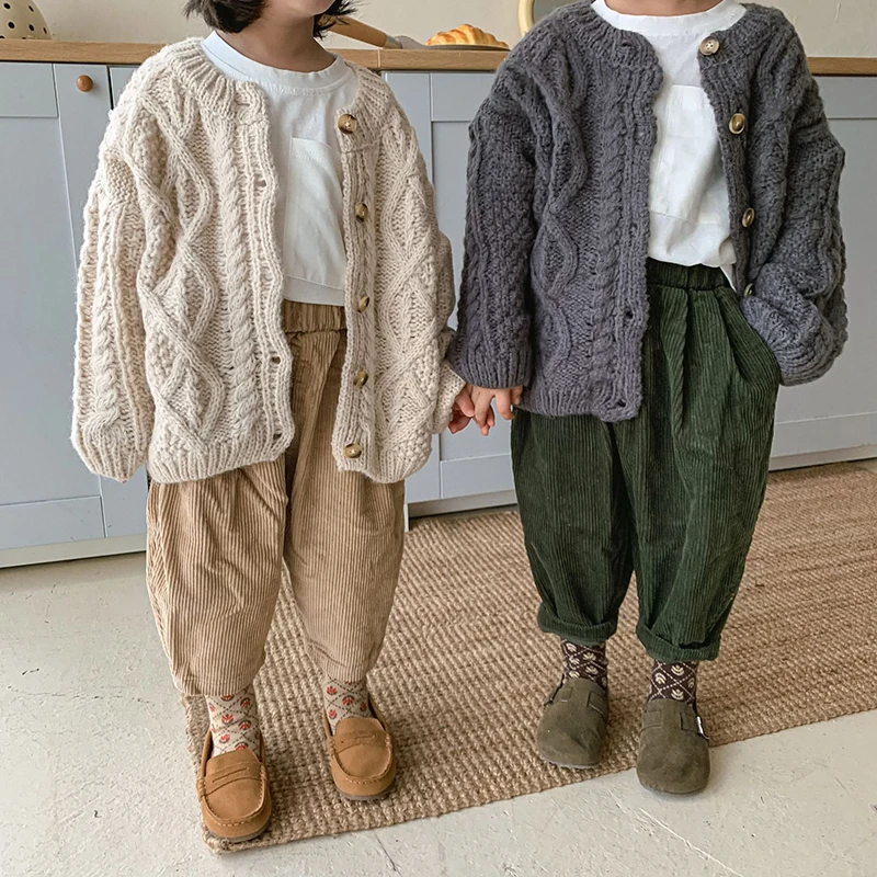1 2 3 4 5 6 7 8 Years Girls Knitted Sweater Cardigan New Fashion Baby Coarse Wool Hemp Retro Cardigan Boys Coat Kids Clothes