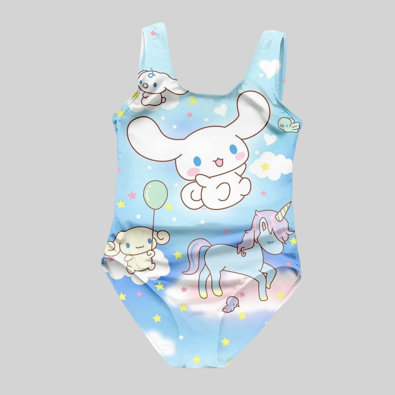 Miniso Cute Children's One-Piece Swimsuit Cinnamoroll 3d Print Girls Women Swimsuit Soft Breathable Kids Summer Seaside Clothes