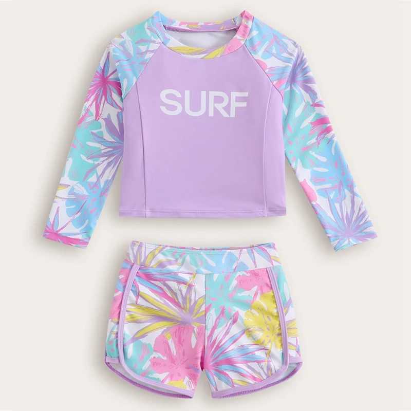 4-7 Years Children's Girls Swimsuit Long Sleeve Kids Split Swimming Set Letter Print Beachwear Rash Guard Outfits