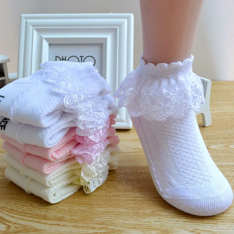 Baby Girls Ankle Socks Breathable Cotton Lace with Ruffle Princess Mesh Sock Children White Pink Yellow Kids Toddler Dance Socks