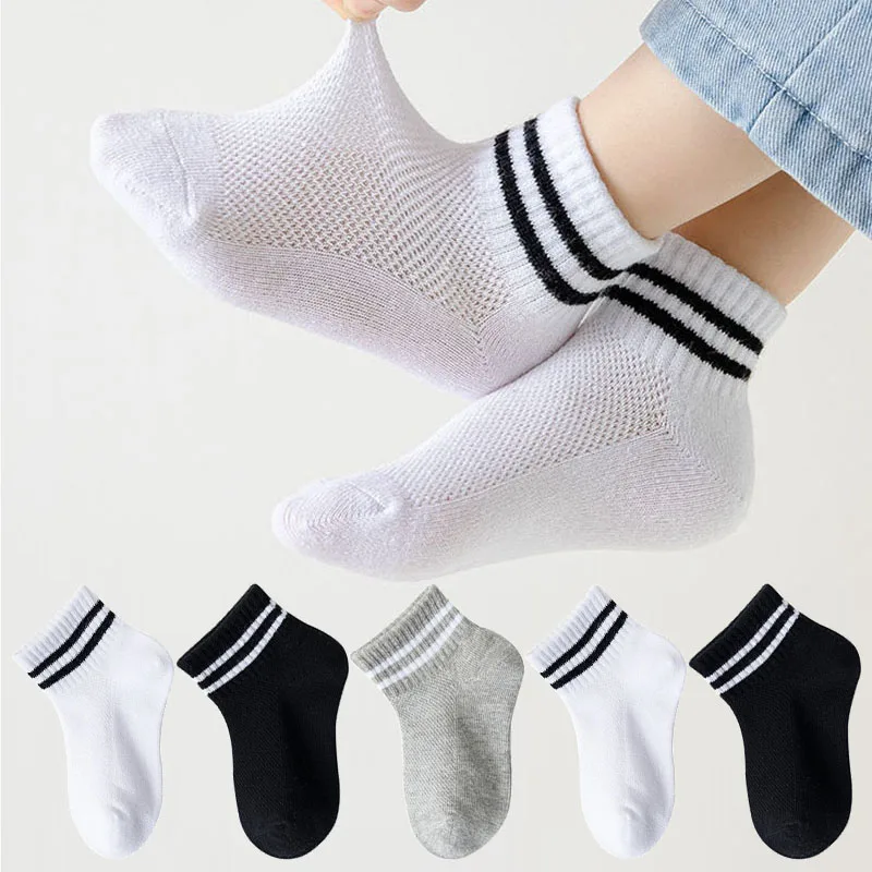 5 Pairs/Lot Summer New Children Cotton Socks Girl Boy Baby Fashion Black White Gray Socks For 1-12 Years Kids Teen Student Socks