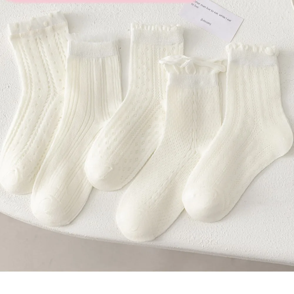 5pair Girls' White Socks Spring Summer Thin Socks Children's mesh Breathable sock girl Baby Lace princess socks