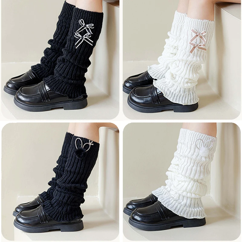 Korean Calf Knee High Long Leggings Sock for Kids Girls Bow Rabbit Ears Children Pile Stockings Cotton White Black Leg Warmers