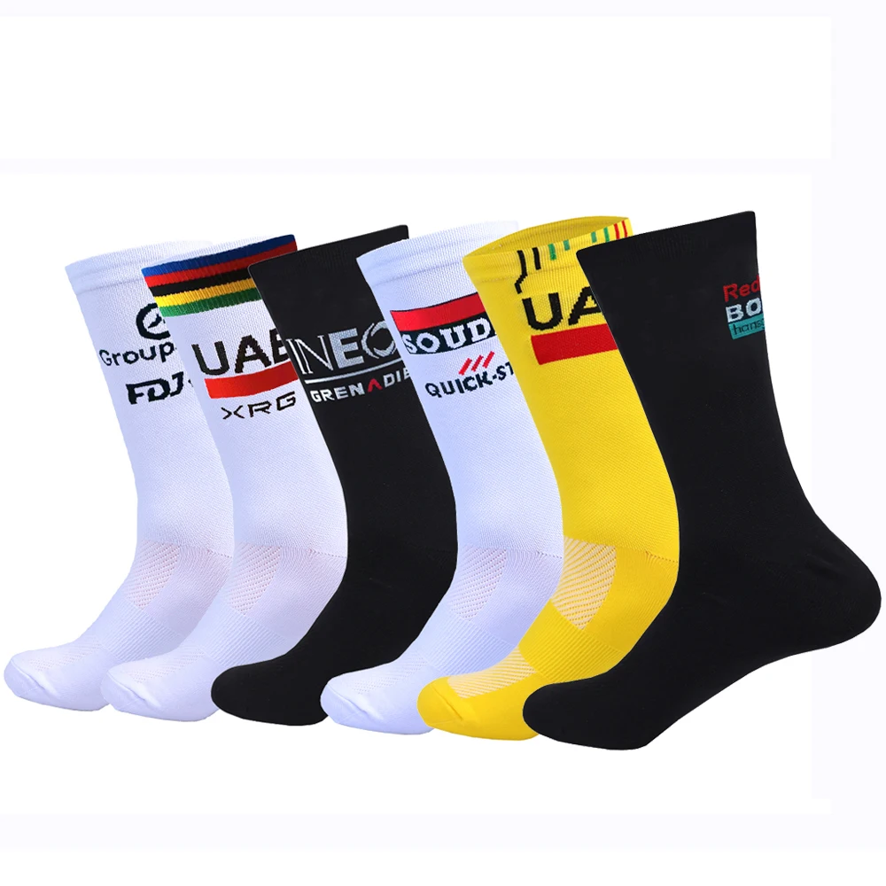 New White UAE Team INEOS Cycling Socks Non Slip Soccer Socks Cushioned Breathable For Running Basketball Bike Sports Grip Socks