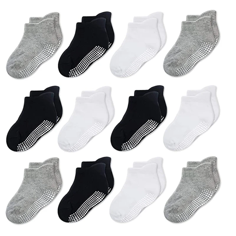12 pairs basic black, white and grey children's socks, adhesive anti-slip socks, baby walker socks, boys' socks and girls' sock