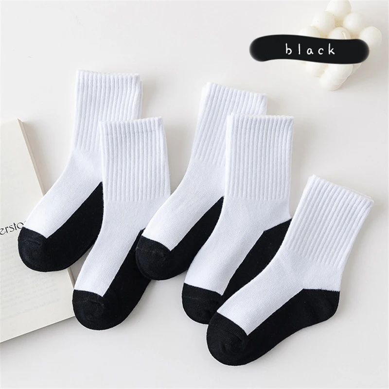 5 Pairs/ Lot Pure Colour Soft Breathable Cotton Kids School Socks Girls Boys Casual Grey Black White Sports Children's Socks