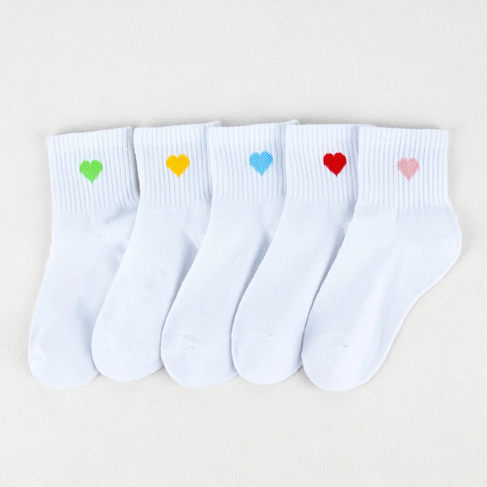 5 Pairs Girls Socks Cute Heart Pattern Comfortable Kids White Socks