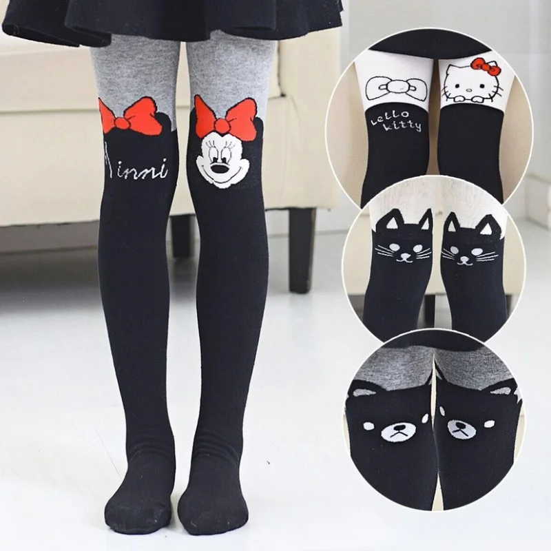 DISNEY Children Tights for Girls Cotton Knitted Kids Girls Pantyhose Cute Minnie Print Soft Baby Leggings White Black Tight