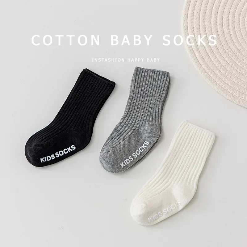 Sporty Fashion Baby Sock for Boy Girl Simplicity Black White Grey Color Non-slip Floor Sock Autumn Toddler First Walker Sock