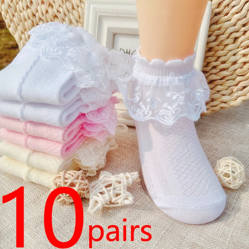 10 Pairs/lot Baby Girls Kids Socks Lace Ruffle Princess Mesh Children Ankle Short Breathable Cotton White Pink Blue Toddler Sock  Read more