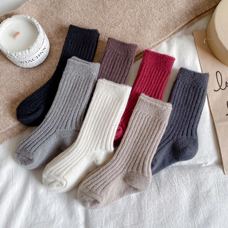 1 Pairs New Warmth Kids Socks Thicken Warm Woolen Socks Solid Color Retro Double Needle Baby Boys Tube Socks For 1-9 Years